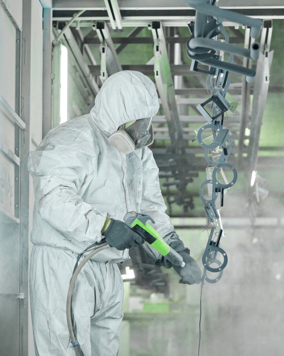 - The operator ensures an even, uniform coat of powder is applied across the entire surface. The powder adheres to the part due to the electrostatic attraction, and any excess powder is reclaimed and reused.